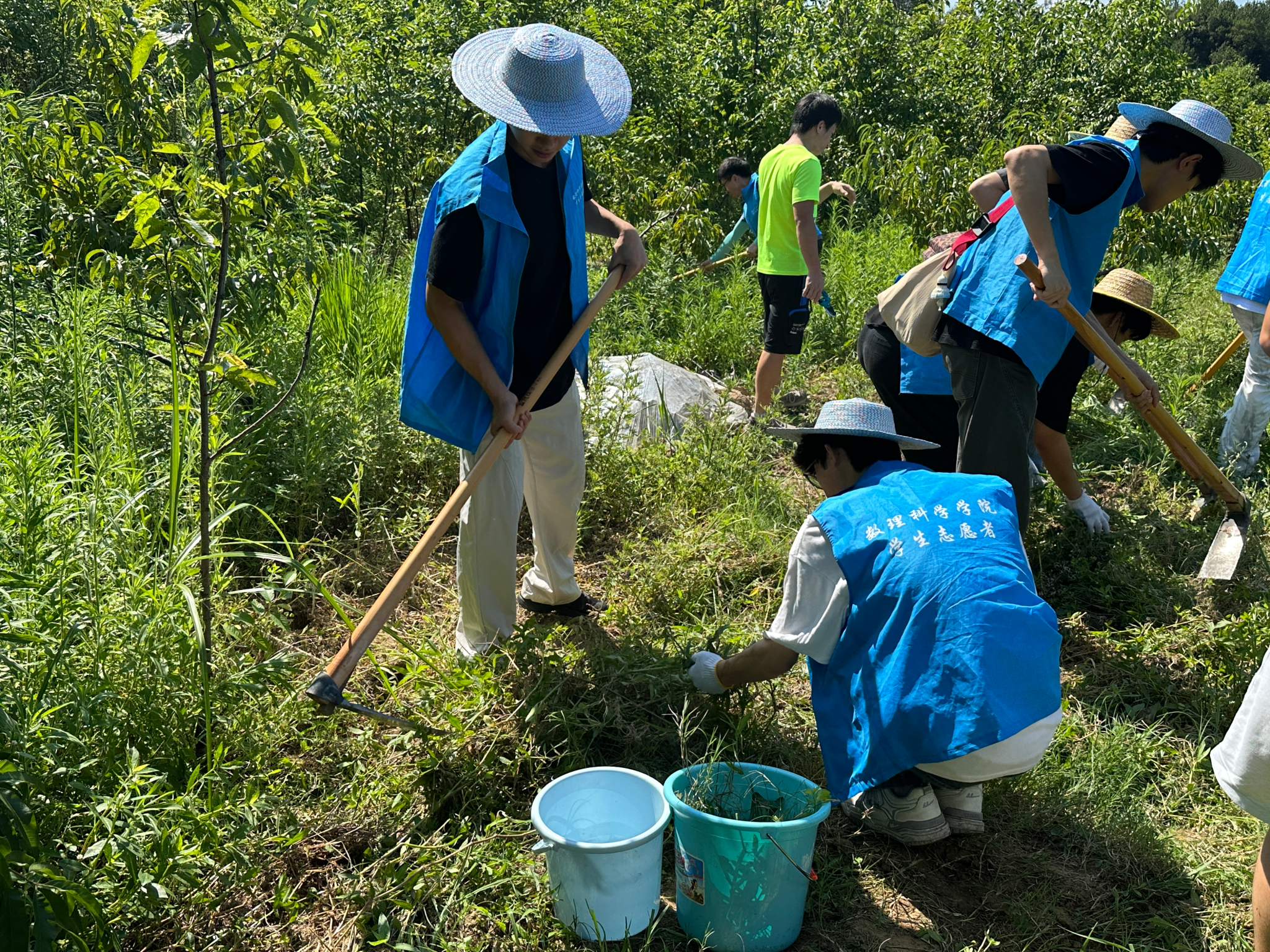 在助农活动中,团队成员在村民指导下投身田间除草劳动。顶着烈日挥汗如雨,弯腰锄草、不惧辛劳,尽管部分同学操作不熟,但在实践中迅速成长。几个小时后,杂草清除一空,田地整齐有序,大家脸上写满自豪与满足,真正体验到劳动的意义与价值。