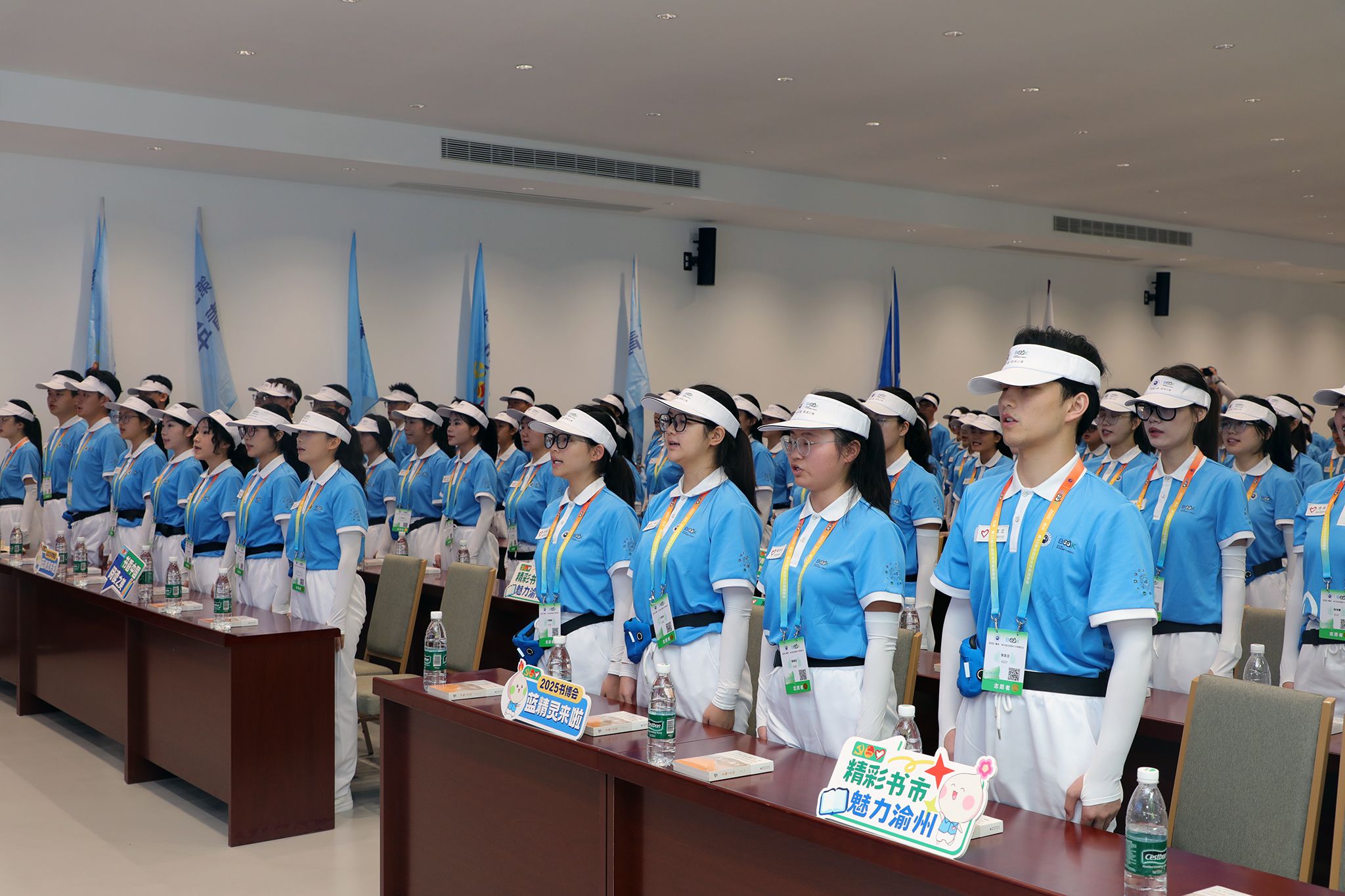 会上,230名书博会“蓝精灵”志愿者进行了庄重的集体宣誓。他们表示,将听从指挥、服从安排、立足岗位、精益求精,秉持“服从指令、服务大局、扎根岗位、追求卓越”的理念,以青春之姿、奋斗之态,积极为书博会的顺利开展贡献力量,助力盛会圆满落幕。志愿者集体宣誓后,许克松讲话并宣布出征。